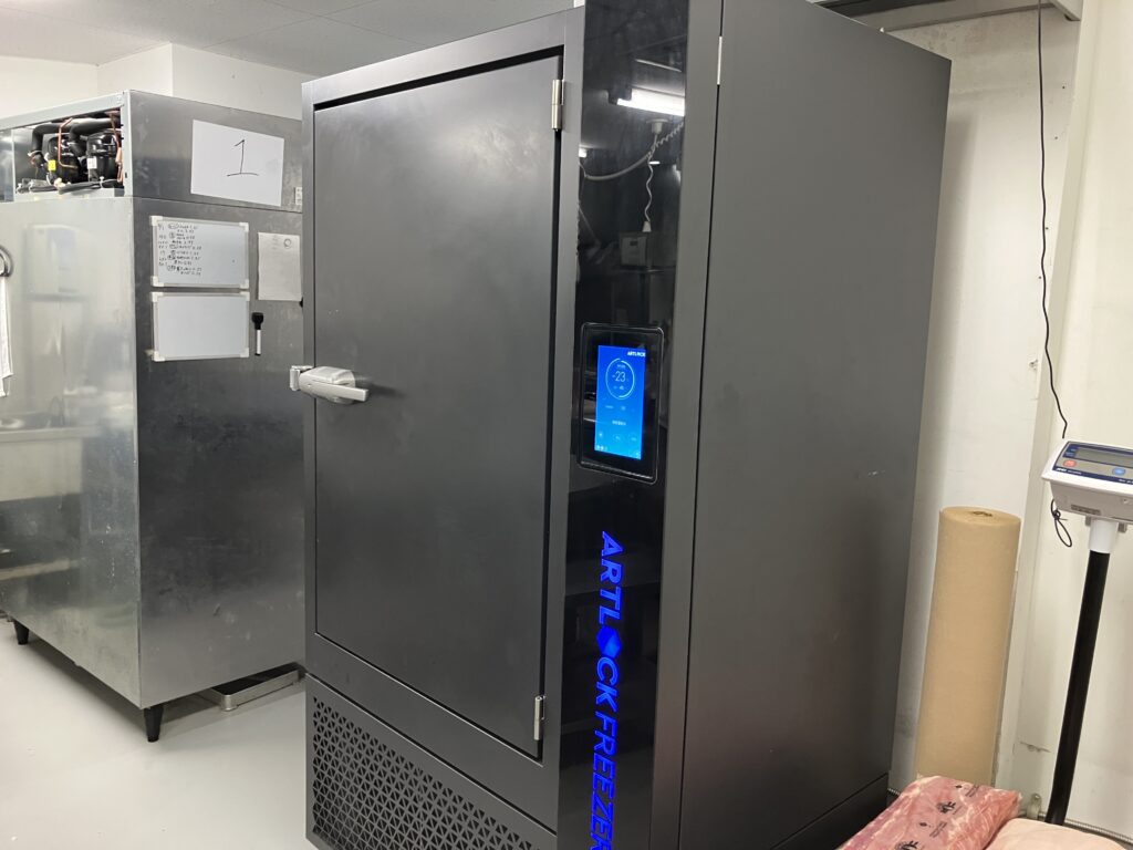 同社では、神戸市内に2つのCKを構え、肉の加工やタレ・惣菜類の調理を集約しています。各店舗では仕上げと盛り付けのみを行う体制をとることで、品質の均一化と効率化を図ってきました。一方で、神戸牛をはじめとする牛肉の取り扱い量が増える中、従来の冷凍方法では凍結に時間がかかり、大量生産やスピーディーな対応が難しいという課題がありました。そこで注目したのが、凍結スピードが速く、ドリップを抑えられるアートロックフリーザーです。品質面・効率面の両立が期待できる点が、導入の決め手となりました。